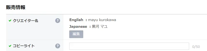 ・クリエイター名も日本語で出したい場合は「編集」から日本語を追加する必要がある